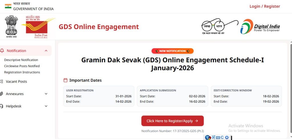 India Post Gramin Dak Sevak New Bharti 2026 : महत्वपूर्ण तिथियाँ